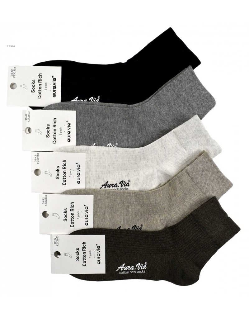 Skarpety długość  za kostkę bawełniane Aura.Via to doskonały produkt dla osób ceniących komfort, jakość i naturalne materiały. Wykonane z wysokogatunkowej bawełny, są niezwykle miękkie i przyjazne dla skóry. Cena za zestaw pięć par