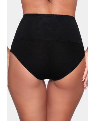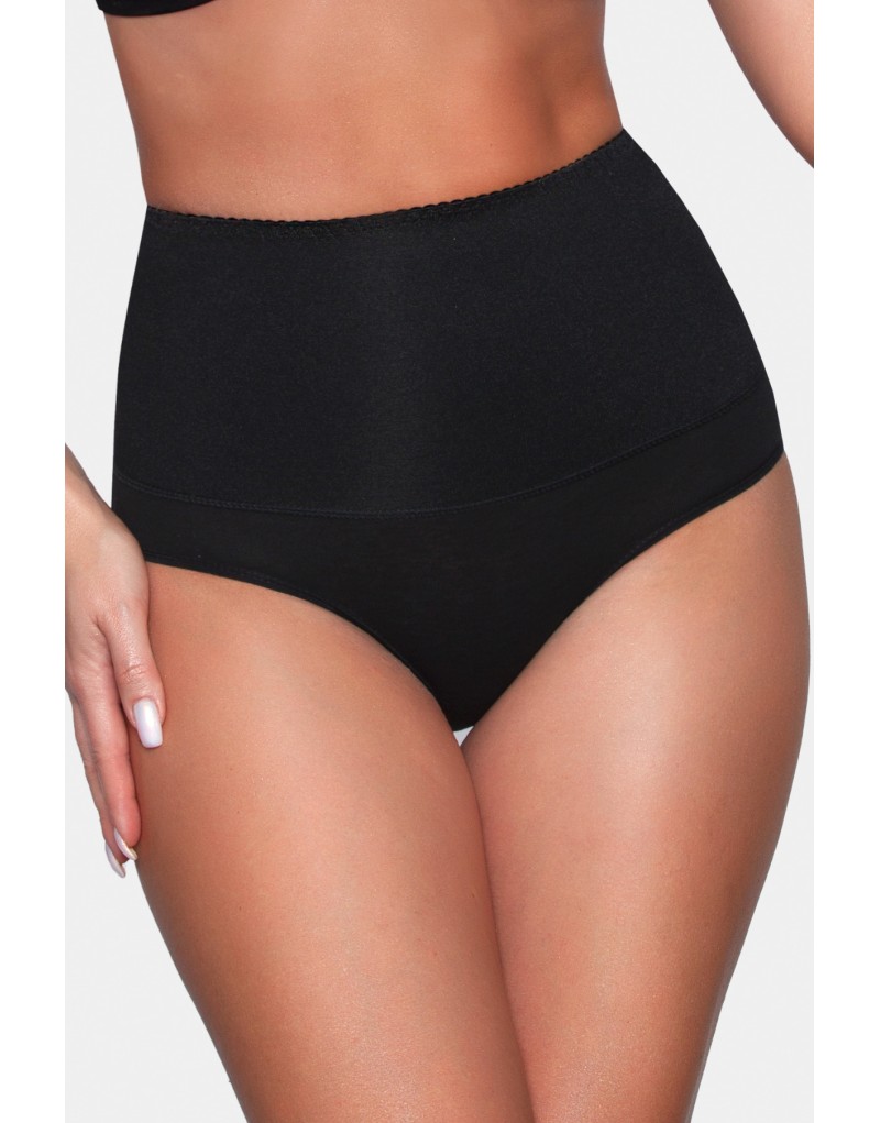 Figi korygujące, z wyższym stanem. Mocna dzianina poliamidowa 87% z elastanem tworzy pas modelujący brzuch oraz biodra. Dolna część majtek wykonana z bawełny 92% i elastanu.