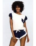 Szorty damskie polskiej produkcji Gabidar - 107. Model bardzo elegancki, komfortowy w noszeniu i bogato zdobiony. Wokół nogawek wszyta przepiękna, dekoracyjna, kwiatowa koronka, która optycznie wysmukla sylwetkę nadając jej  kobiecych kształtów.
