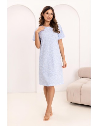 Koszula nocna z krótkim rękawem szyta z bawełnianej dzianiny. Koszulka o długości za kolana i okrągłym dekoltem. Szyta z wysokogatunkowej bawełny zapewniającej komfort podczas użytkowania.