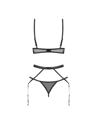Komplet Euridia Obsessive biustonosz pas do pończoch stringi czarne