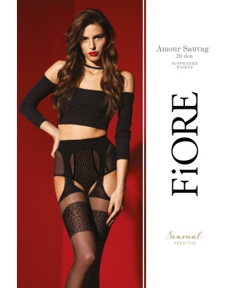 Rajstopy transparentne ze zwierzęcym wzorem imitujące pończochy, wykonane w technologii wysokogatunkowego oplotu 3D dla zwiększonej trwałości i sprężystości. Modele wykonane w tej technologii zapewniają odczucie komfortu dla skóry i maksymalnego przylegania do nogi. Płaski szew i niewidocznie wzmocniona część palcowa.